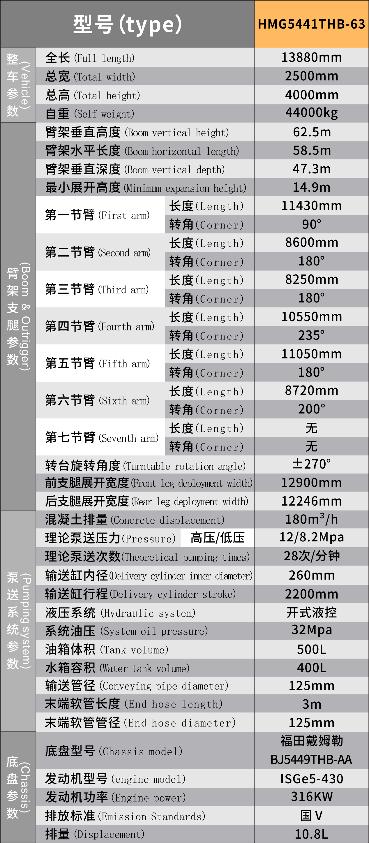 型號:HMG5441THB-63 參數:底盤:四橋福田/四橋奔馳/四橋五十鈴