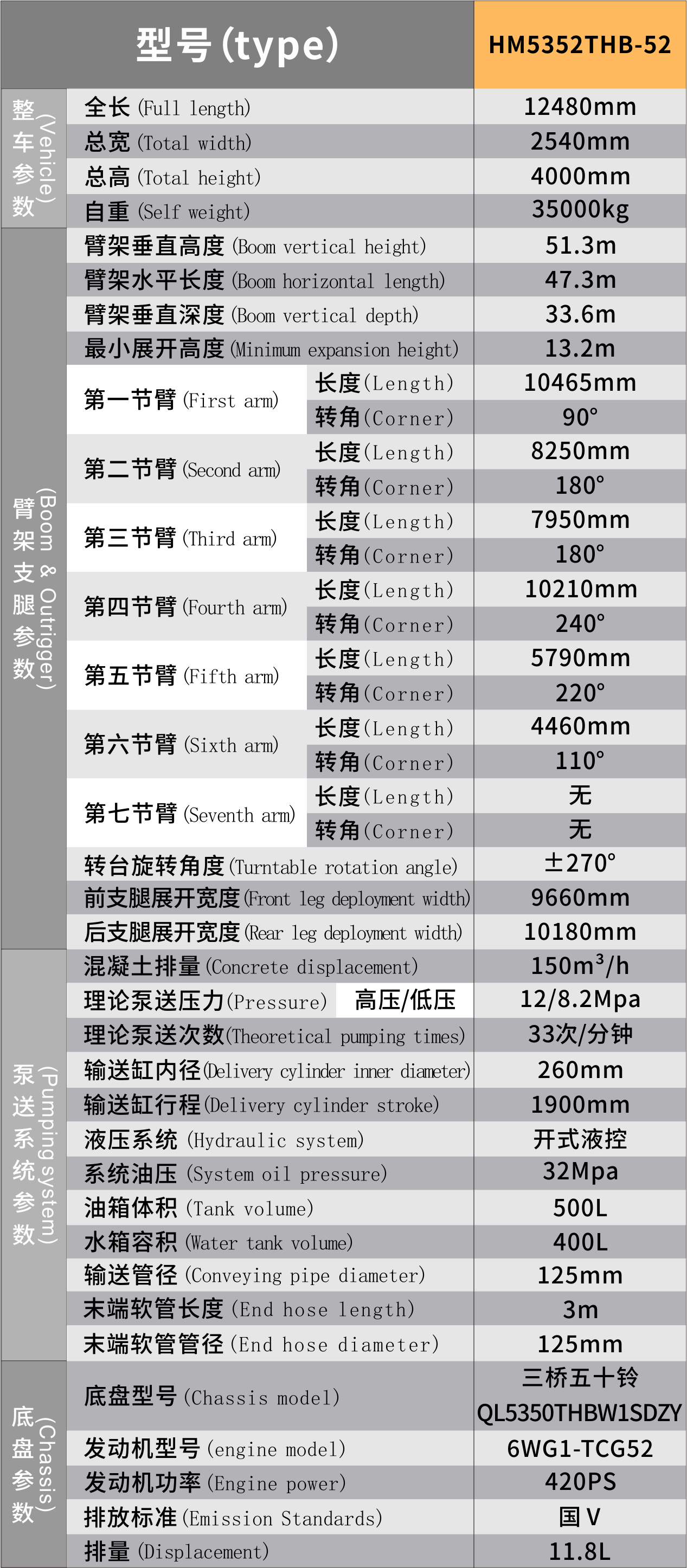 HM5352THB-52三橋52米國五五十鈴底盤泵車是一款承載能力強(qiáng),動(dòng)力性能好、油耗低,操作簡單可靠的泵車。