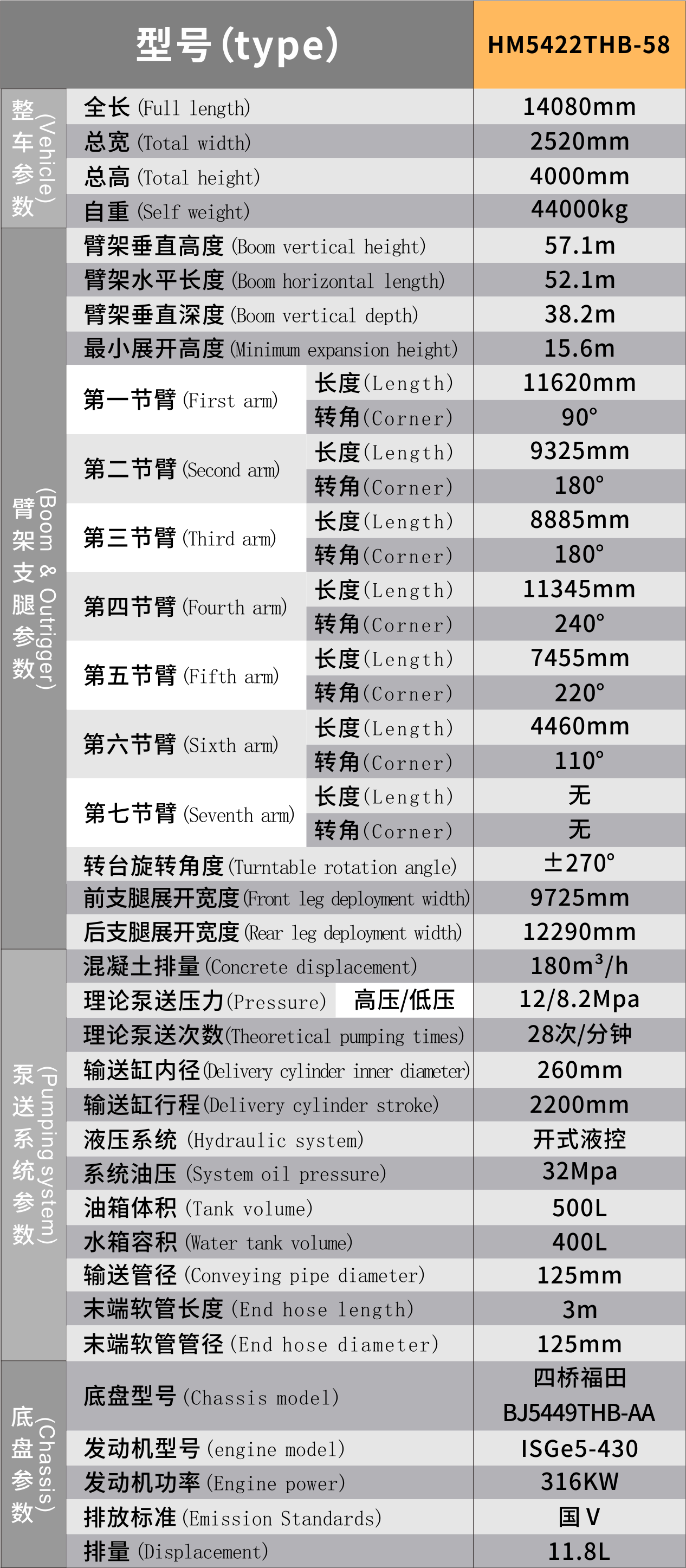 型號(hào):HM5422THB-58 參數(shù):底盤:四橋福田