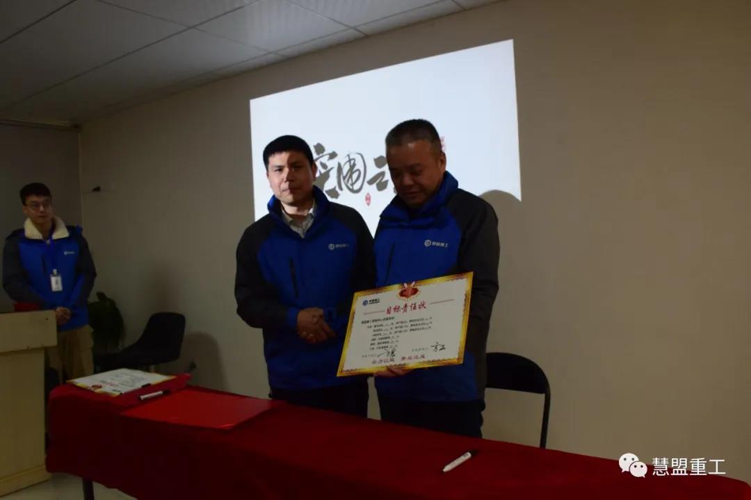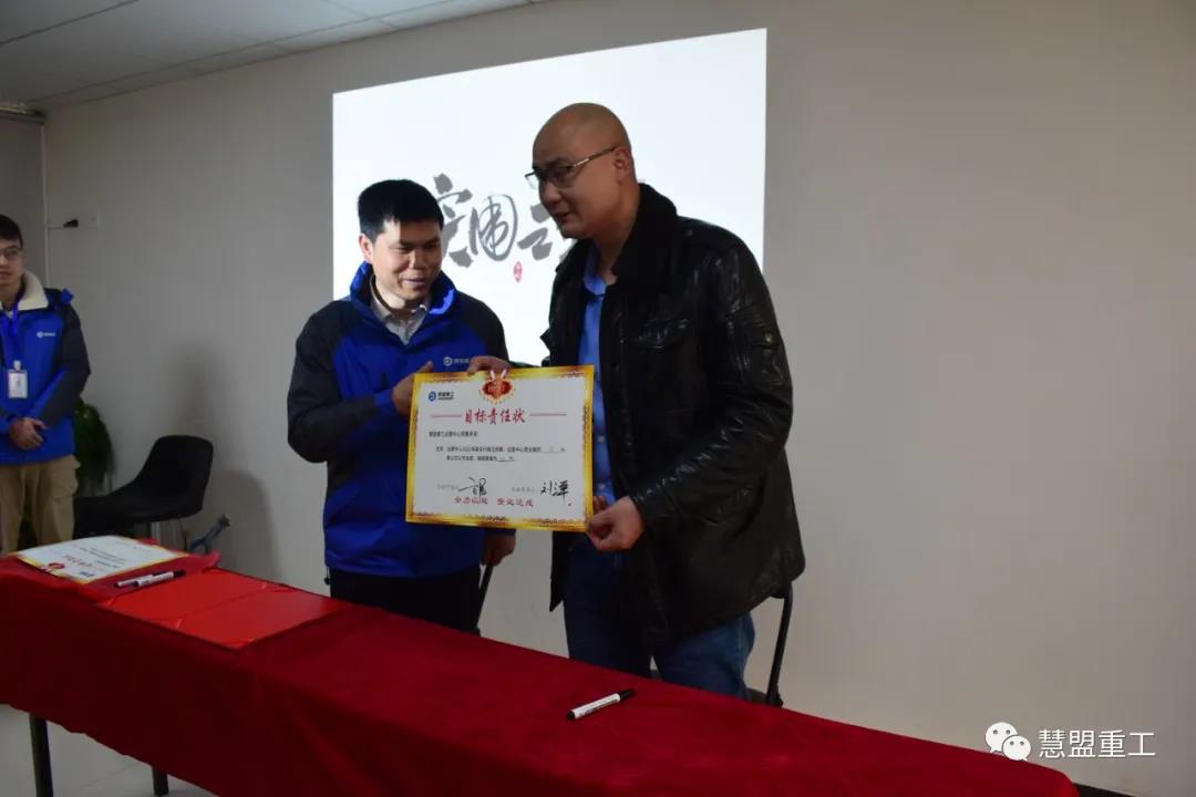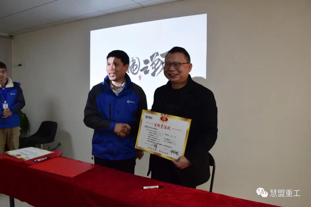 2021年,為強化計劃管理,深入開展慧盟重工各項工作,達成戰(zhàn)略目標;總經(jīng)理方展分別與營銷中心、制造中心、運營中心、科技管理部門簽訂了《2021年目標責任書》。