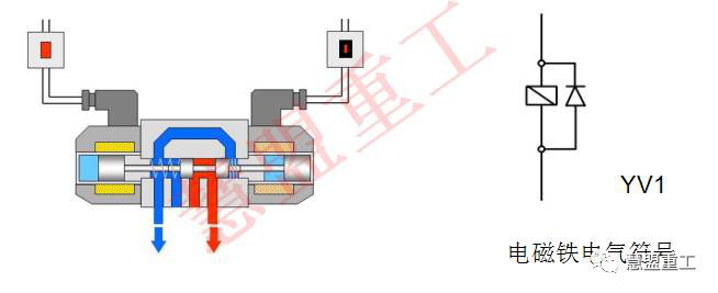 得電的電磁線圈產(chǎn)生電磁力,推動閥芯移動,從而改變液壓油的方向,壓力,流量等;失電后靠彈簧的彈力回到初始位置