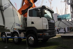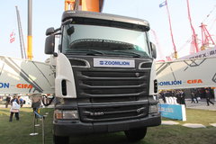 中聯(lián)重科 101米混凝土泵車采用斯堪尼亞底盤,泵送排量245方/小時,泵送壓力7.5/12 Mpa,整車全長高達(dá)15.5米,采用7軸14x4的驅(qū)動形式。中聯(lián)重科在該車基礎(chǔ)上進(jìn)行了上裝的打造,采用7節(jié)臂輸送臂,其中最后4節(jié)使用了碳纖維制成。